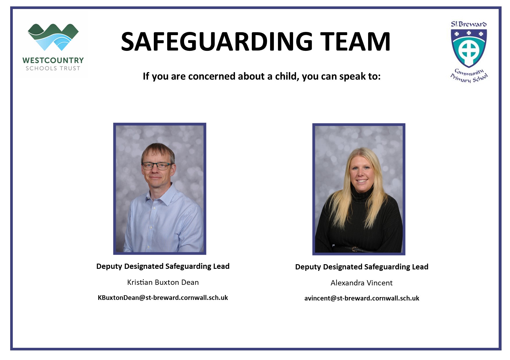 Safeguarding is taken very seriously at St Breward Community Primary School. We believe safeguarding is everyone's responsibility, but we also have a designated safeguarding team: